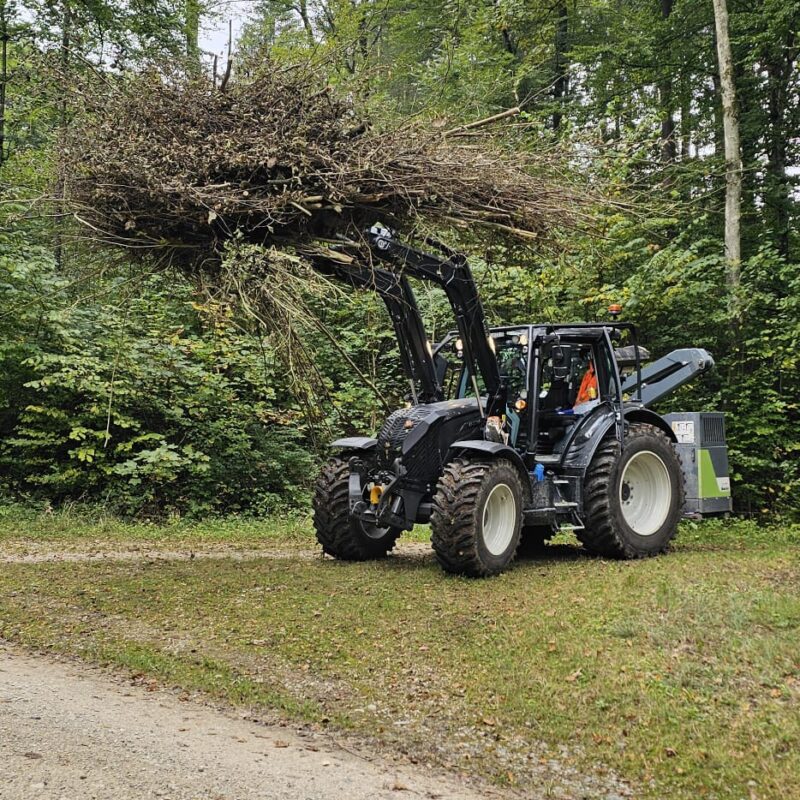 Der Werkhof führt aktuell im gesamten Gemeindegebiet von Birr und Lupfig Rückschnittarbeiten entlang von Strassen, Gehwegen sowie an Waldrändern durch. Mit einer Heckenschere am Traktor werden Hecken, Sträucher und überhängende Äste fachgerecht zurückgeschnitten.